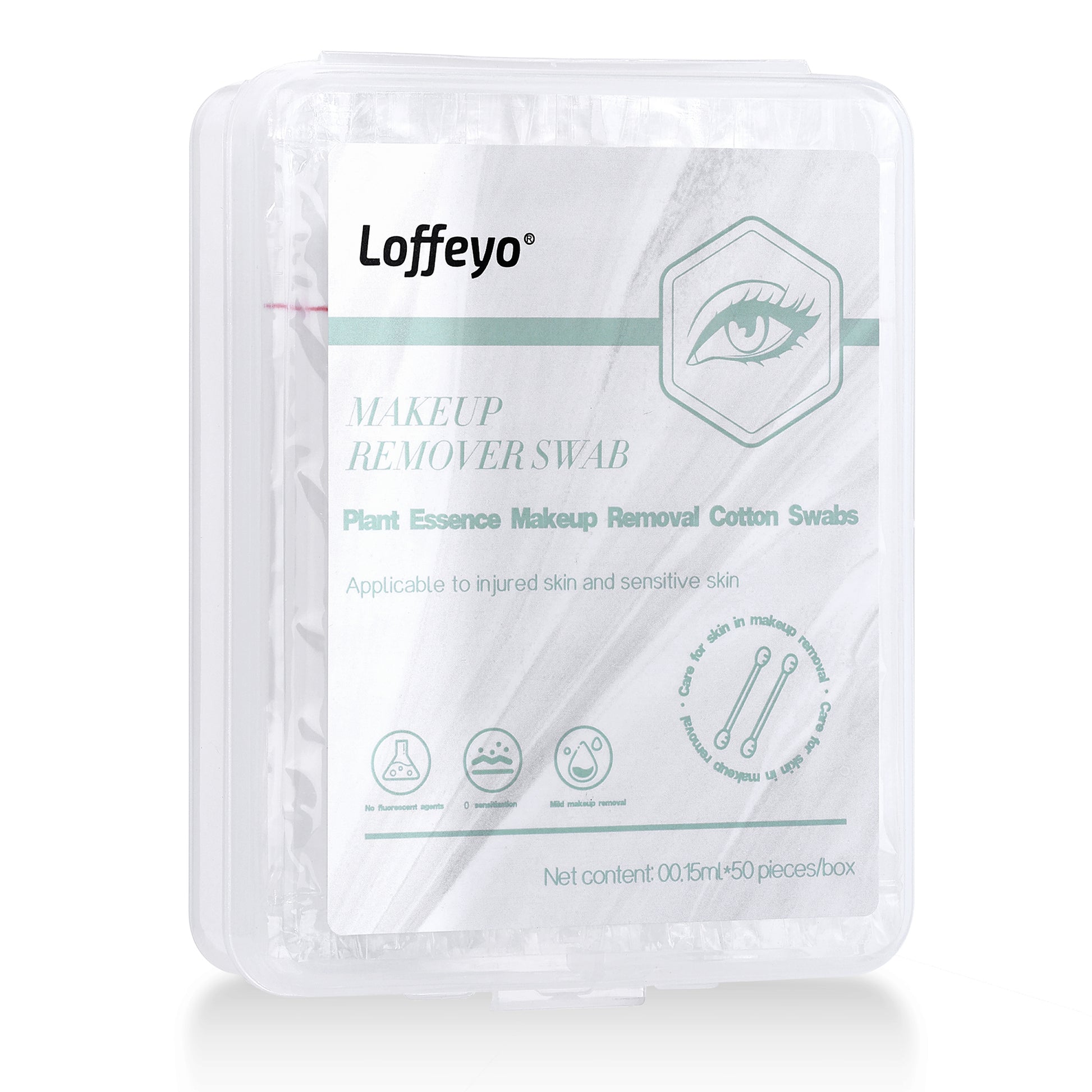Loffeyo Makeup Remover Cotton Swabs, Eye & Lip Sticks remover With White Lily, Liquid-Filled Makeup Remover Swabs, 1-Pack x 50 Count, Space Saving and Travel Essentials